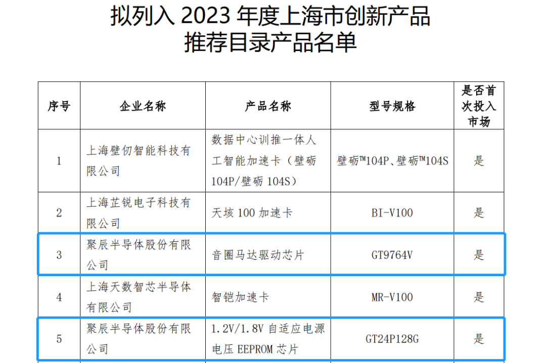 近日,上海市經(jīng)濟和信息化委員會公布了《2023年度上海市創(chuàng)新產(chǎn)品推薦目錄》(以下簡稱“《推薦目錄》”),經(jīng)過前期準備、企業(yè)申報、材料初審、專家評審以及上海市創(chuàng)新產(chǎn)品推薦目錄編審委員會討論,聚辰半導(dǎo)體的兩款產(chǎn)品——音圈馬達驅(qū)動芯片GT9764V和1.2V/1.8V自適應(yīng)電源電壓EEPROM芯片GT24P128G——被列入《推薦目錄》。